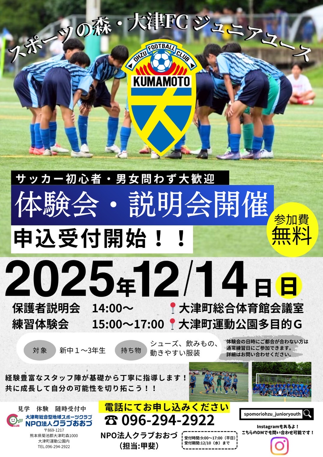 〜2026年度新U13〜15選手体験会及び保護者説明会〜