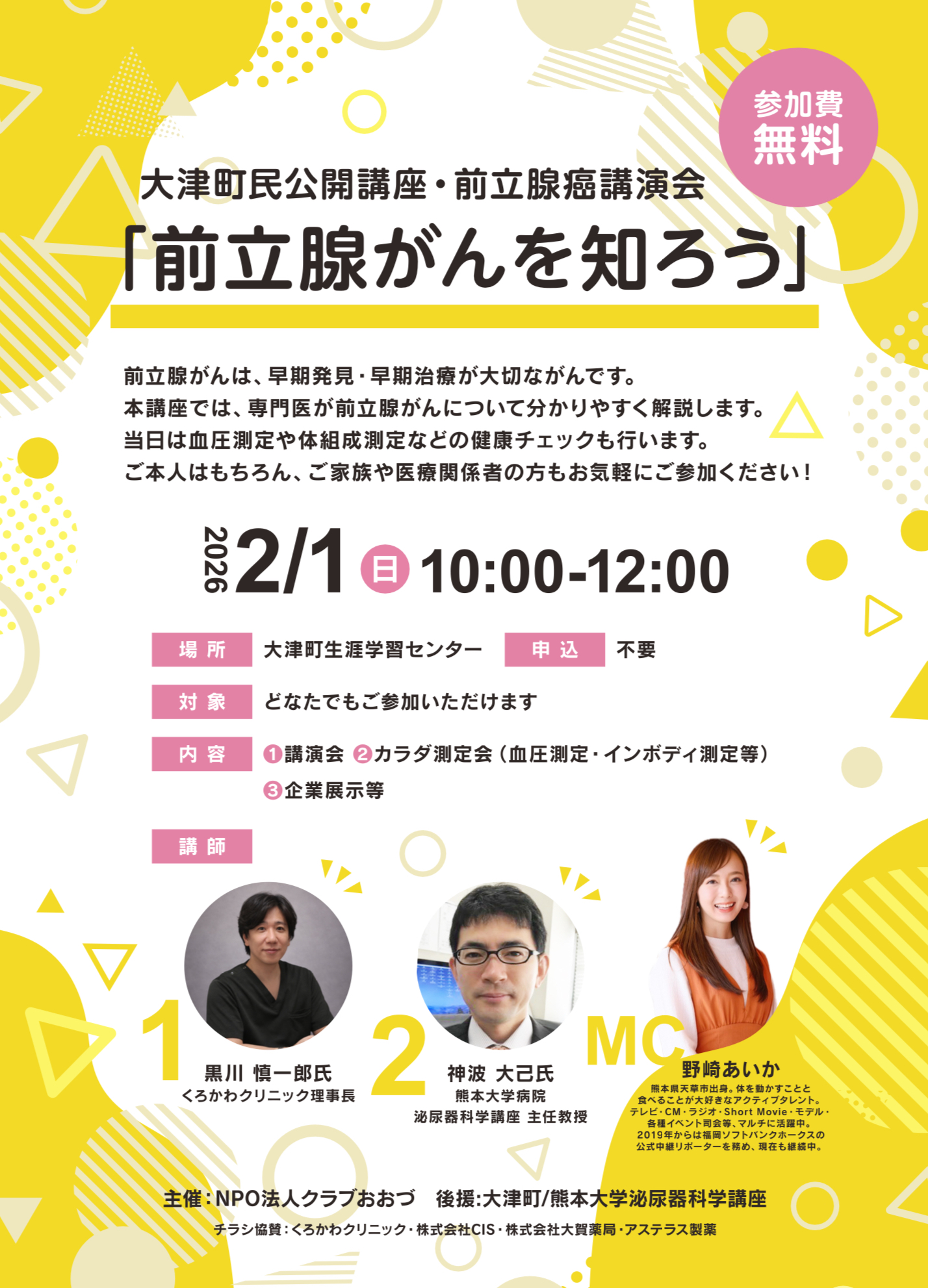 2026年2月1日大津町生涯学習センターにて大津町民公開講座・前立腺癌講演会「前立腺がんを知ろう」を開催致します。